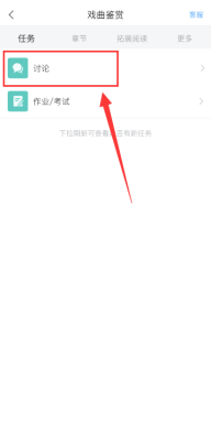 3.讨论。同学在学习过程中可以直接点击课程页的【任务】-【讨论】进行发帖与同学交流(如下图)。