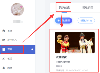 第三步:在“我学的课”标题下点击课程图标,进入课程页面,就可以开始进行课程学习了。
