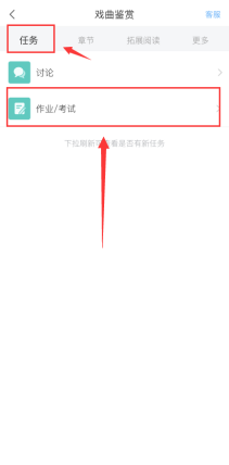 2.考试。点击【任务】,打开作业/考试,点击【考试】后可看到考试任务。到考试时间后进入完成试卷并提交后可看到试卷状态由“未交”变成“已完成”。