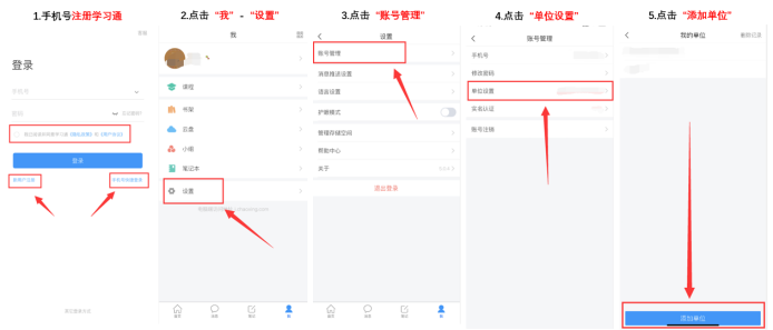第二步:用手机号注册账号并根据提示绑定单位账号,已经绑定过的同学可直接用手机号和密码(或验证码)登录。添加单位的时候输入“公司全称”加“学号”。