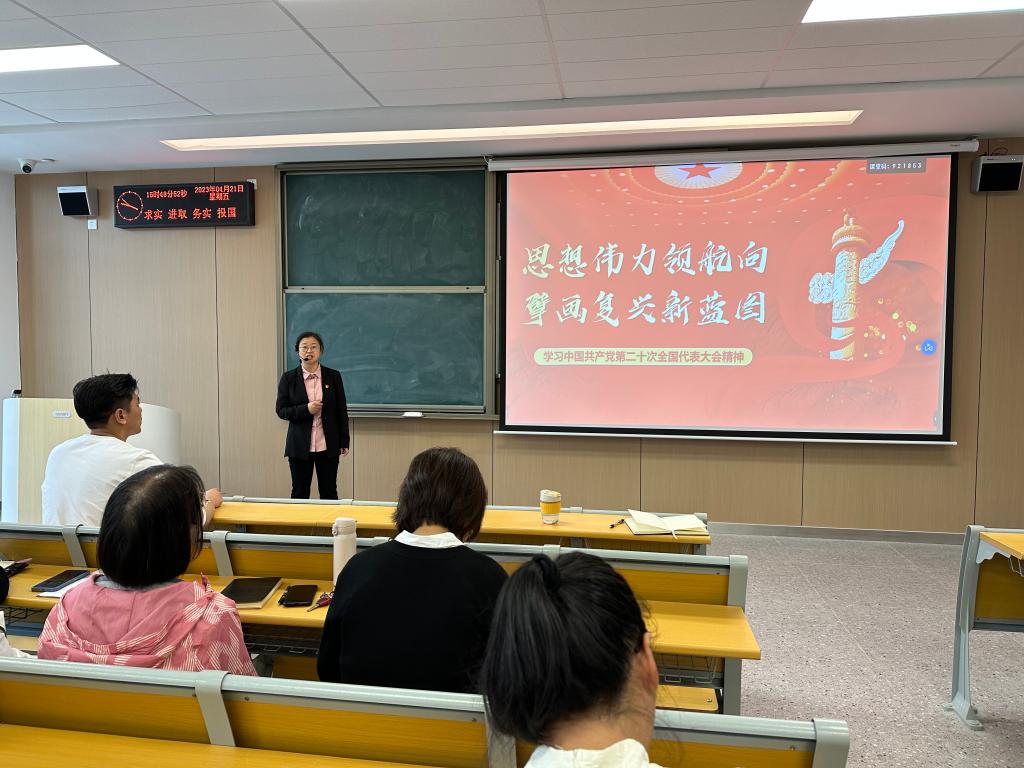 马克思主义公司副教授佘时珍围绕党的辉煌历程、二十大的主题,主要成果、二十大的15个关键词、过去5年的工作和新时代10年的伟大变革、以中国式现代化全面推进中华民族伟大复兴、为全面建设社会主义现代化国家而团结奋斗六个方面作了全面宣讲和深入阐释。并强调要把学习宣传贯彻党的二十大精神作为当前和今后一个时期的首要政治任务,把党的二十大精神贯彻落实到教育改革发展各方面、全过程,落实到教育强国建设上。