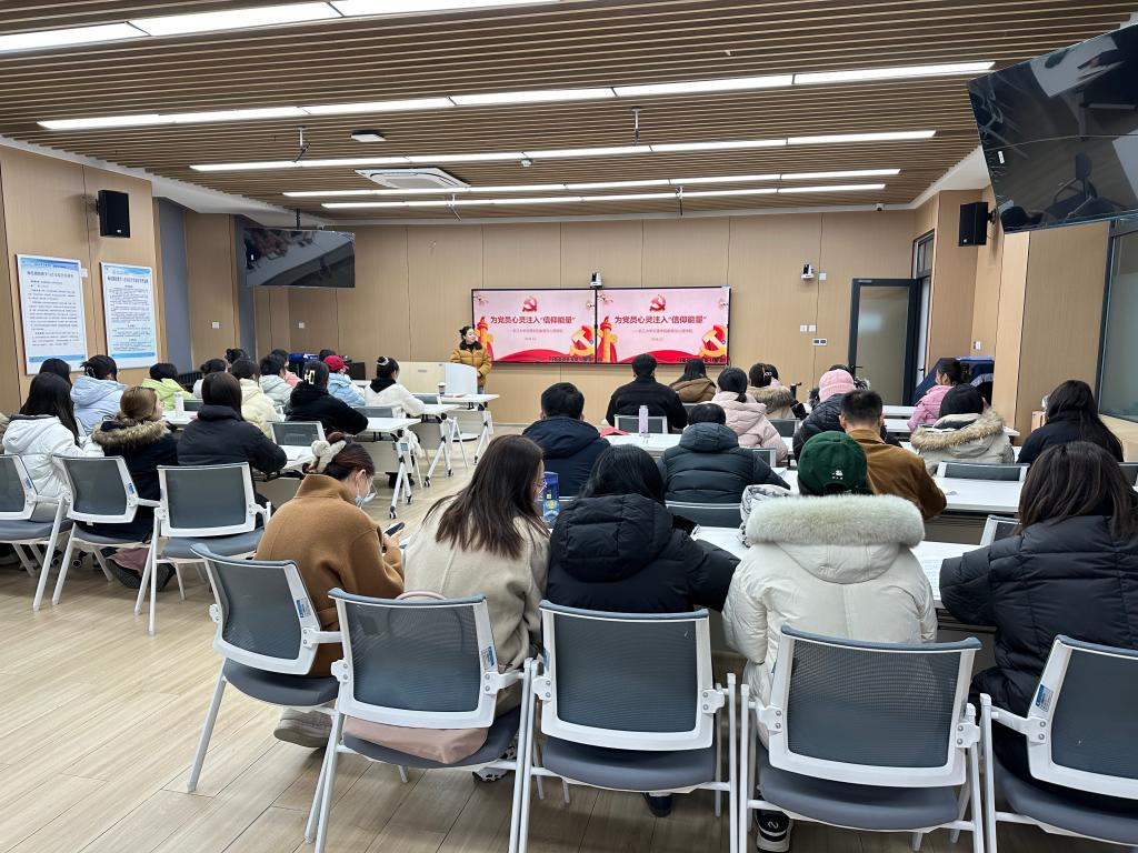 12月12日下午,教育与心理公司党总支在实验楼A408教室开展党总支副书记梅曼曼为全体师生党员讲党课活动。梅曼曼以“为党员心灵注入信仰能量”为主题,组织党员同志共同回顾入党初心。