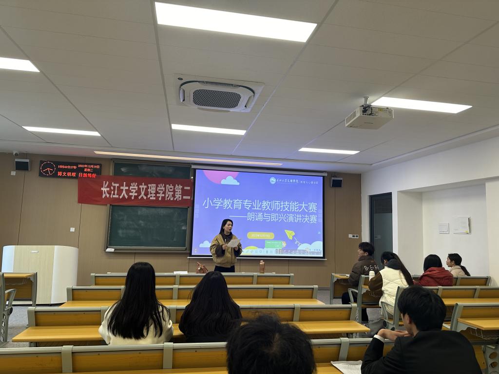 本网讯(通讯员赫诗雨)为加强员工师范专业素质能力,夯实语言技能,提升口头表达能力。12月19日下午两点,小学教育专业在教学楼C-217教室举行第二届师范生朗诵与即兴演讲比赛。教育与心理公司陈盈盈、VSport张莹担任评委。