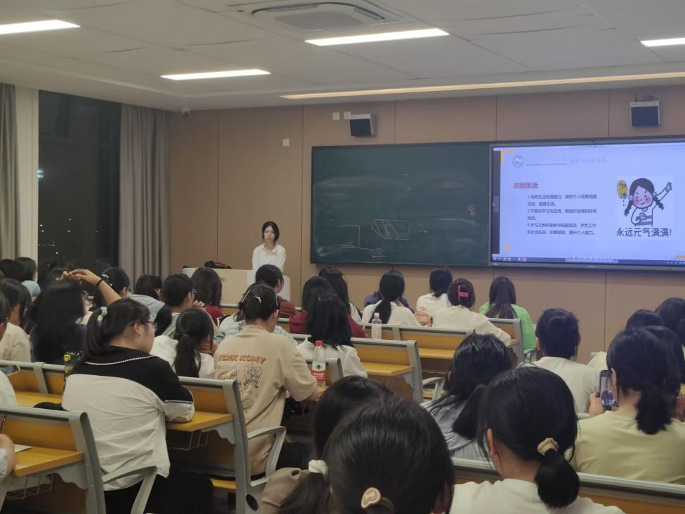 9月5日晚,新生入学班会上,李晓怡分别从专业学习、纪律意识、情绪调节等几个方面进行介绍,解读了近期活动安排,提出了军训期间学习、生活上的要求及对大学未来四年的期望。最后,与全体新生一起观看《开学第一课》,感受了科技发展给中国带来的巨大变革,领略了中华文化的博大精深,理解了教育在国家发展中的重要性,也展望了未来中国的无限可能。