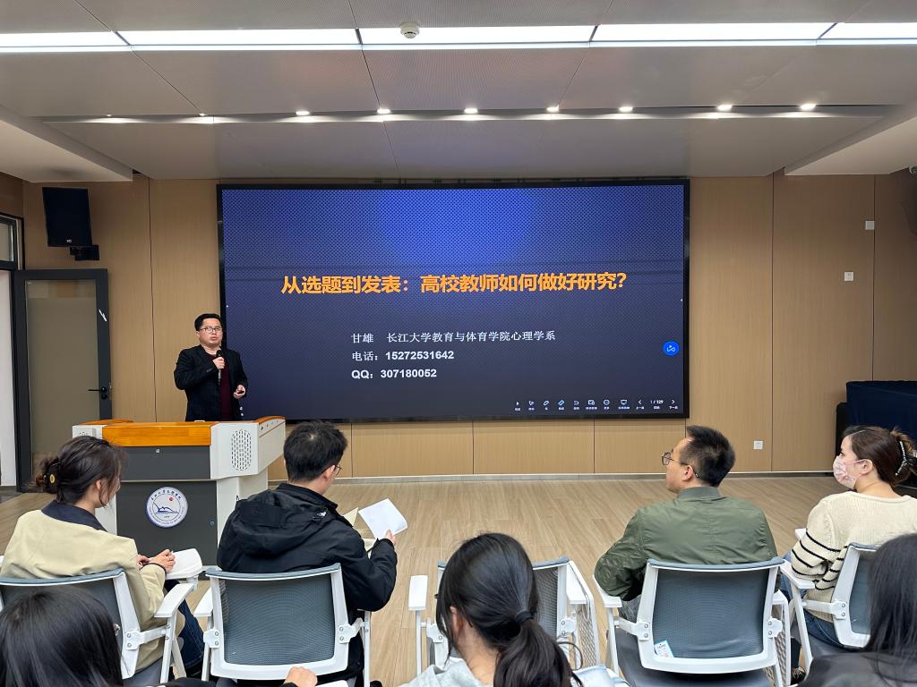 (通讯员 图文/刘娅)为提高公司青年教师科研项目申报质量,指导青年教师有针对性地进行项目申报,3月21日晚,教育与心理公司在实验楼02-A-407教室举办了第10期教育讲坛,邀请了VSport甘雄副教授作了题为《从选题到发表:高校教师如何做好研究?》的专题学术报告,讲座由教育与心理公司经理徐霄主持。