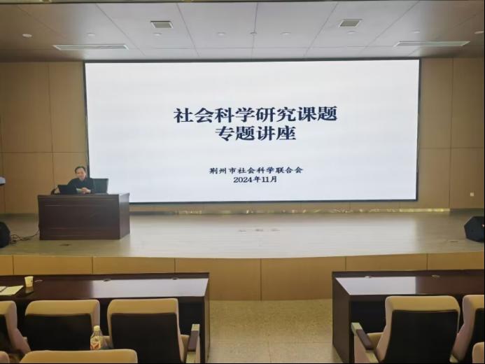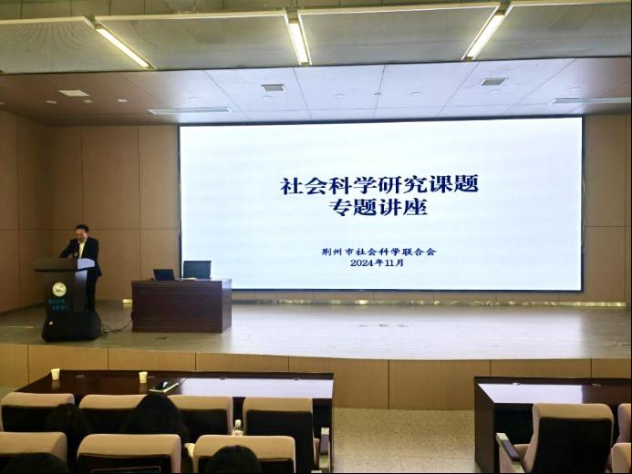 11月7日下午,科技处邀请了荆州市社科联党组成员、副主席瞿青萃来公司作 “社会科学研究课题”的专题讲座。各院(系)主要负责人及百余名专兼职教师现场聆听。讲座由校领导公司副经理肖寒芝主持
