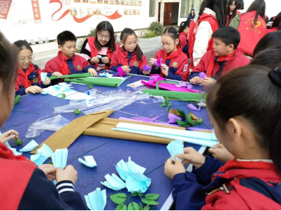 本次活动包含冬季安全知识竞赛和纸艺折花两个部分。活动开始,志愿者为孩子们讲解了冬季安全防护的相关知识,并进行相关的知识竞赛,孩子们在活动中积极参与、踊跃抢答,将冬季安全防护的知识性牢记于心。随后,志愿者们通过PPT讲解和视频教学的方式,介绍了纸艺的相关知识,孩子们与志愿者一起进行纸艺折花,从翻飞的纸张中去感受中华传统文化的魅力。活动最后,志愿者与孩子们合影留念,将爱心和微笑一起记录下来。