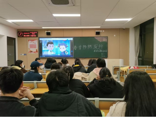 主题班会上,辅导员们采用知识宣讲、视频观看等方式,全面细致的讲解了春季流感、水痘、手足口病、流行性腮腺炎等春季多发传染病的危害、症状、传播途径、防控手段等有关知识,大大提高了同学们的防病和健康意识。各班班干部则结合具体案例,加深员工对春季传染病的预防知识的了解。讨论环节上,同学们畅所欲言,结合自身实际交流自己对春夏传染病的认识,并表示要加强个人卫生、勤通风、勤洗手、勤锻炼、有效预防疾病。