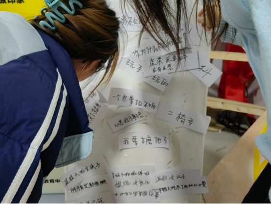 打破束缚,心灵破茧。同学们勇敢地撕掉束缚自身的负面标签,并把写满鼓励话语和正能量字句的纸条粘贴上去,用心声代替偏见,用行动打破束缚。简单的“一撕一贴”体现着同学们心态的转变,撕下标签的瞬间内心沉重的包袱也一起卸下,写下鼓励的同时也更加坚定地忠于自己。