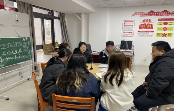 会议伊始,李艺欣老师对近期正在进行的“党员下沉班级”活动进行了周密的安排,明确了每个人的职责和任务,确保各项工作能够有条不紊地推进。随后,红色宣讲团的新成员向娴祺同学进行了以“红色引领,青春同行”为主题的试讲。她们精神饱满,激情洋溢,用生动的语言和感人的故事,将红色精神传递给了在场的每一个人,赢得了在场成员的阵阵掌声。