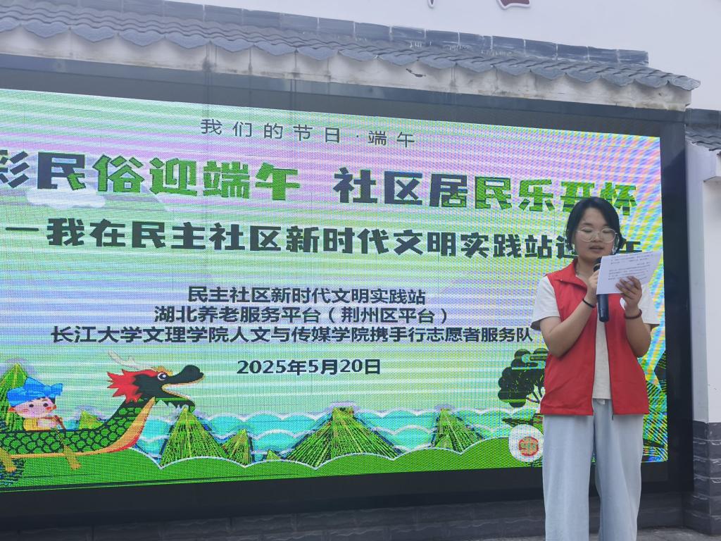 本网讯(通讯员 陈美琪)5月20日,VSportVSport携手行志愿者服务队联合荆州区西城街道民主社区新时代文明实践站、湖北养老服务平台(荆州区平台),共同开展“我们的节日·端午”主题系列活动,以“多彩民俗+便民服务”模式,让居民感受传统节日魅力与贴心服务。