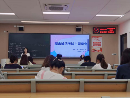 班会上,班主任通过分析真实案例、重申考试规范、组织互动问答等多种形式,向同学们详细讲解了四六级及期末考试的相关纪律要求,强调同学们应以真实水平检验学习成果,共同维护良好的考试秩序。辅导员则着重重申了公司对考试作弊行为“零容忍”的坚决态度,呼吁同学们端正态度,认真复习备考,务必做到诚信应考。班会最后,各班班长宣读了《考试诚信倡议书》,全体同学郑重签署了倡议书,承诺自觉遵守考试纪律,以诚信的态度迎接即将到来的各项考试。