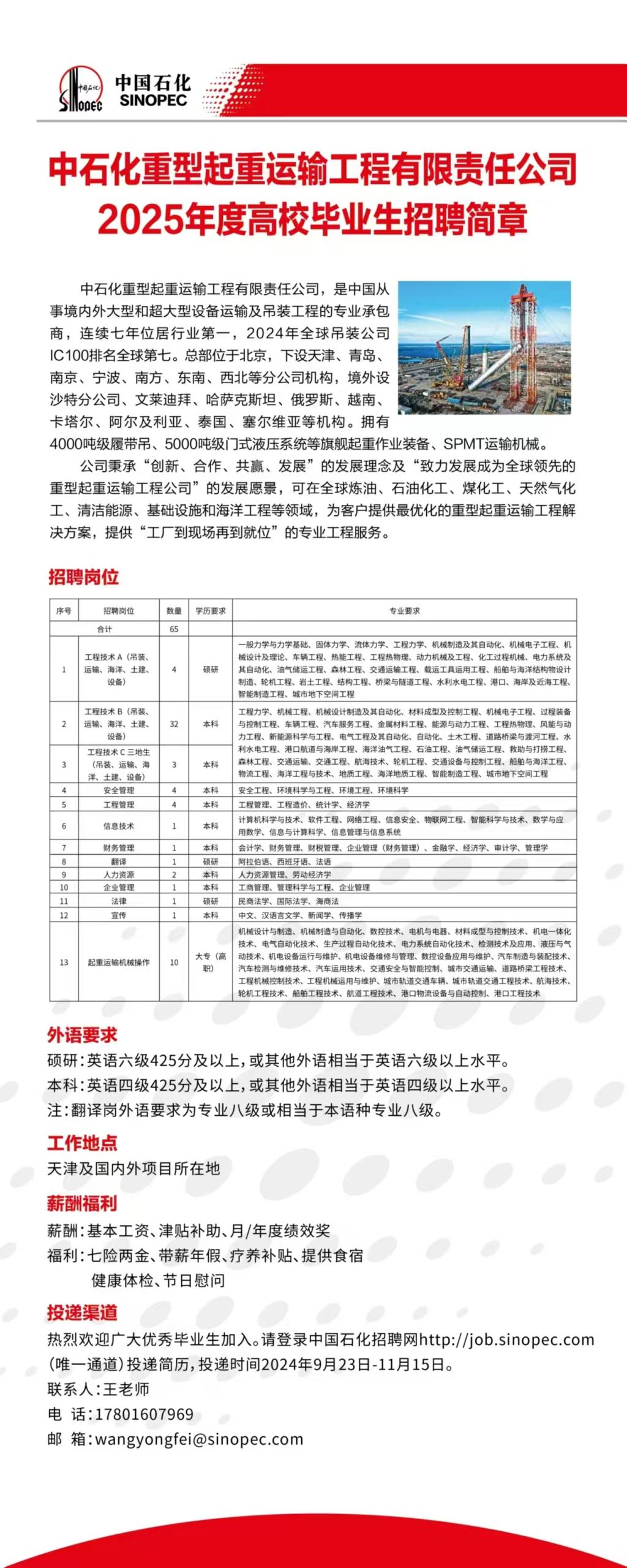 中石化重型起重运输工程有限责任公司招聘