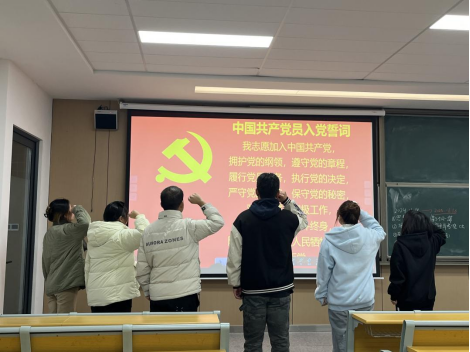 大会严格按照党组织接收预备党员的各项程序进行,以线上线下相结合的方式开展。各支部书记发言后,新接收的预备党员同志依次上台向党组织汇报自身具体情况,阐明入党决心。随后,入党介绍人汇报了培养对象自递交入党申请书以来的教育培养情况和现实表现等,并对其能否入党表明了态度,各党支部正式党员对新接收的预备党员进行民主投票,全部高票通过。最后,新接收的预备党员同志们一同重温入党誓词,庄严宣誓。