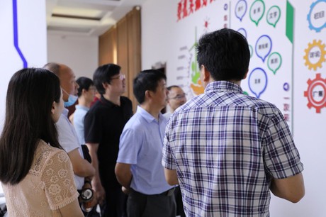 在中心党委书记欧阳克华的带领下,公司领导分别参观了融媒体演播厅,导播室,化妆间,非编室等工作区域。从空间设计,具体用材到价格定位等,都做了全面详细的了解。