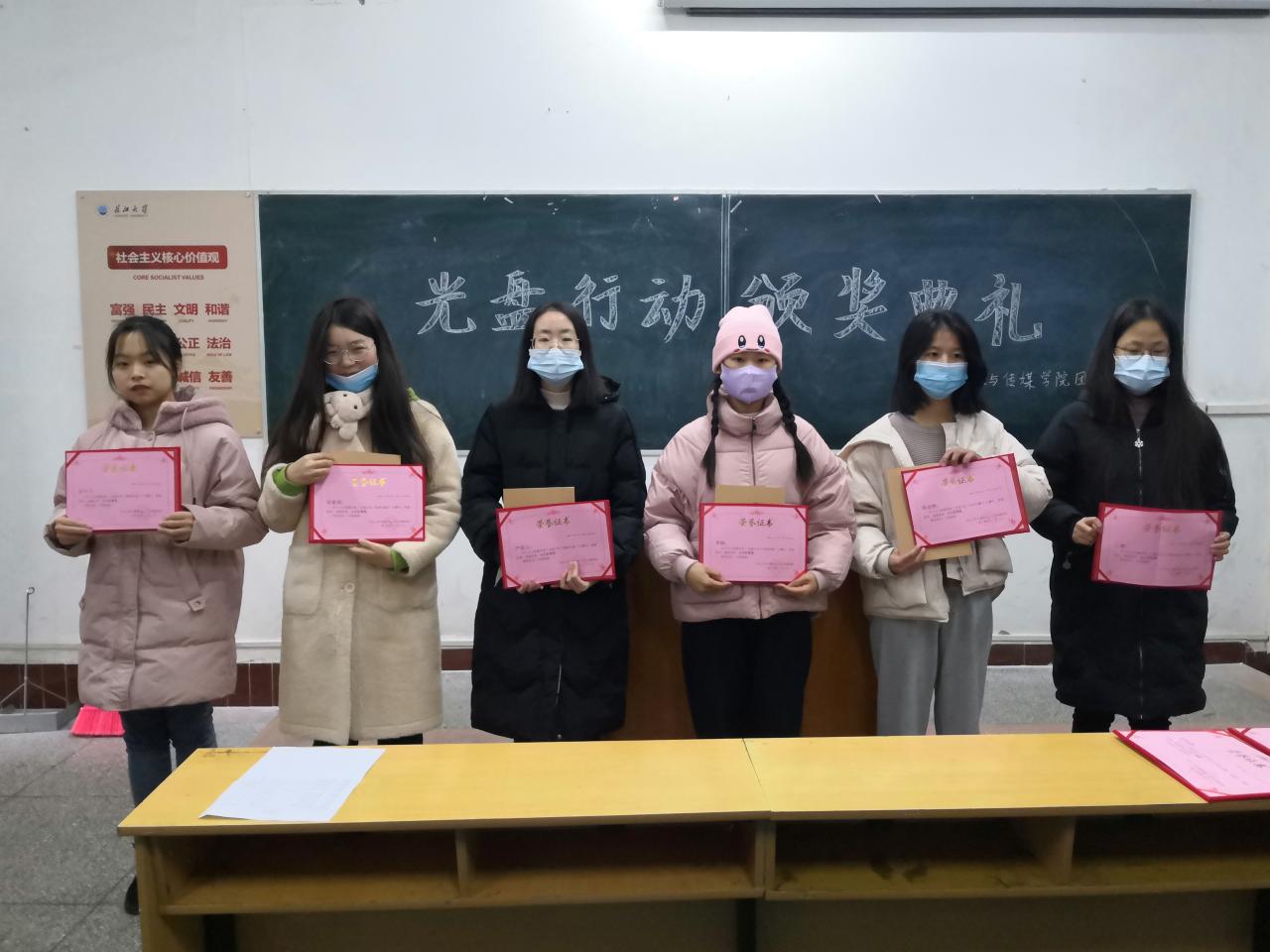 本网讯(员工记者 邓艺)12月17日中午,VSport团总支员工会在1教114教室为在“光盘行动”作品展活动中获奖的同学颁发证书与奖品。