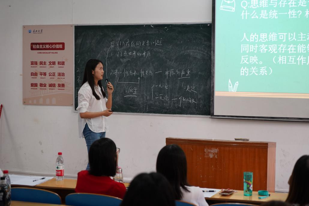 参与测评的是闫小杰、杨玉丽、黎雪、邵宇四位入职一年左右的青年教师,每人30分钟分别试讲了《现当代文学》、《古代文学》、《思想政治与法律基础》、《马克思主义原理》并回答了评议组的提问。