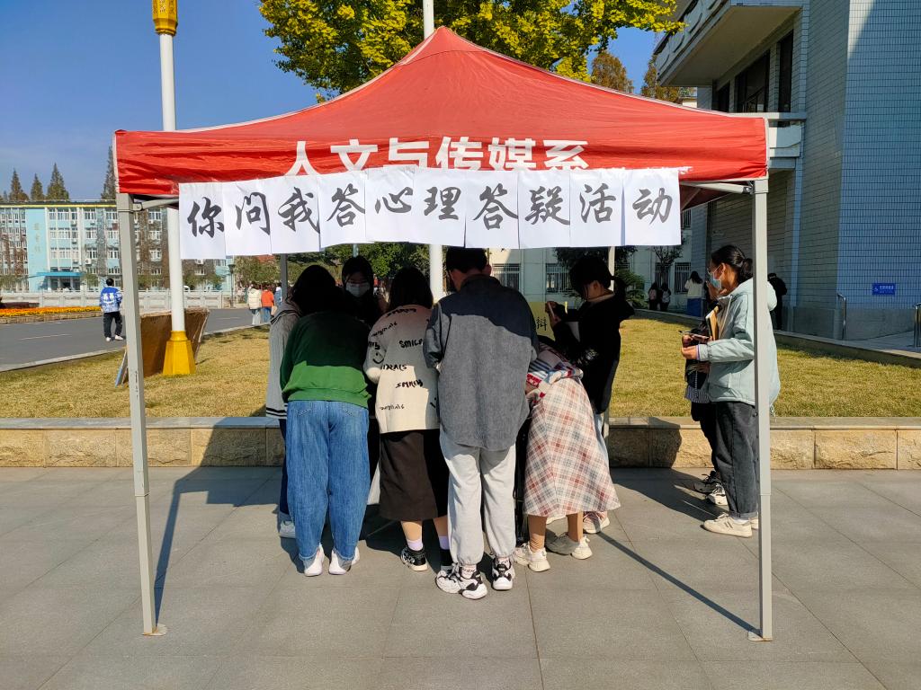 本次活动分为你问我答心理答疑活动、“青春心理,由我来辩”辩论赛 、“纸短情长”书信活动和“匠心巧手”折纸活动四种活动形式。第一轮你问我答心理答疑活动拉开了此次心理健康月活动的帷幕,活动在一教门口和十二舍门前篮球场展开,同学们写下自己有关心理的问题后由其他人抽取回答,参与的同学都获得了书签奖励。同学们踊跃报名,活动现场气氛活跃。