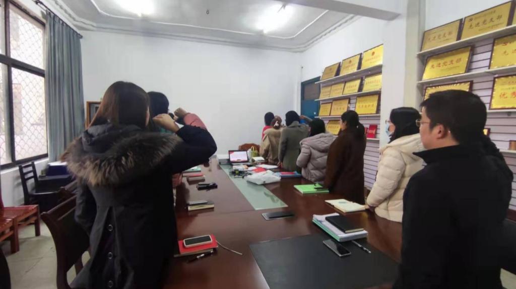 随后,全体党员教师开展12月的支部主题党日活动。教工支部书记朱文霞带领成员重温入党誓词、学习党的创新理论,内容包括:《中国共产党章程》、《中国共产党简史》重点篇章;习近平在中央民族工作会议上强调以铸牢中华民族共同体意识为主线,推动新时代党的民族工作高质量发展;湖北省宗教事务条例;中共VSport第二次党代会报告“奋进新时代,启航新征程 为加快建设国内一流综合性大学而努力奋斗”等内容。