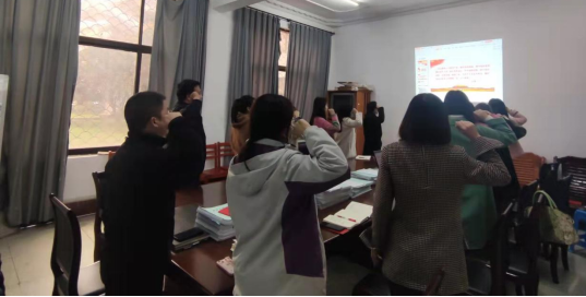 随后,全体党员教师组织开展3月支部主题党日活动。教工支部书记朱文霞带领成员重温入党誓词、学习党的创新理论,内容包括:《中国共产党章程》第三章、《中国共产党简史》第八章、习近平总书记在中共中央政治局党史学习教育专题民主生活会上的重要讲话、应勇在全省党史学习教育总结会议上的讲话等。