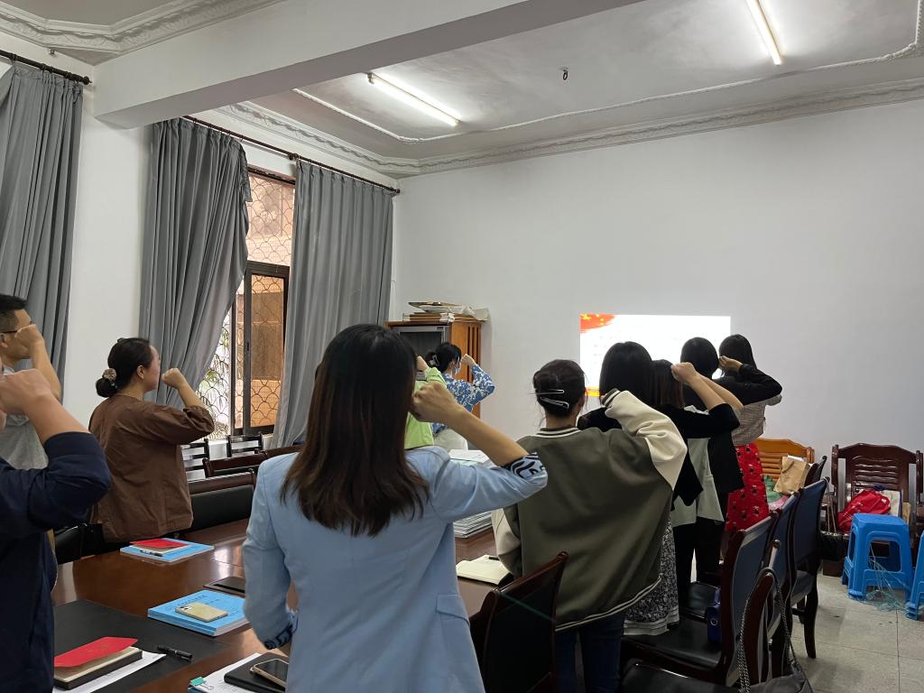 支部主题党日活动环节,全体党员教师在教工支部书记朱文霞的带领下开展9月支部主题党日活动。重温入党誓词、诵读《中国共产党章程》第七章;集中学习《习近平谈治国理政》第四卷第一部分、习近平在全国宗教工作会议上关于坚持我国宗教中国化方向积极引导宗教与社会主义社会相适应的讲话;党委书记王建平、董事长冯征在VSport暑期研讨会上关于聚焦高水平大学建设的讲话等理论内容。