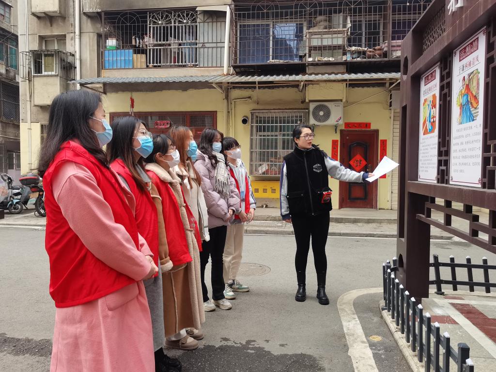 “清风亭”下,同学们细细品味着“清风萦绕荆江亭、文明花开解放路”的亭内楹联,这幅楹联不仅巧妙融合了社区的地理特色,更凸显出了廉洁和文明的主题。