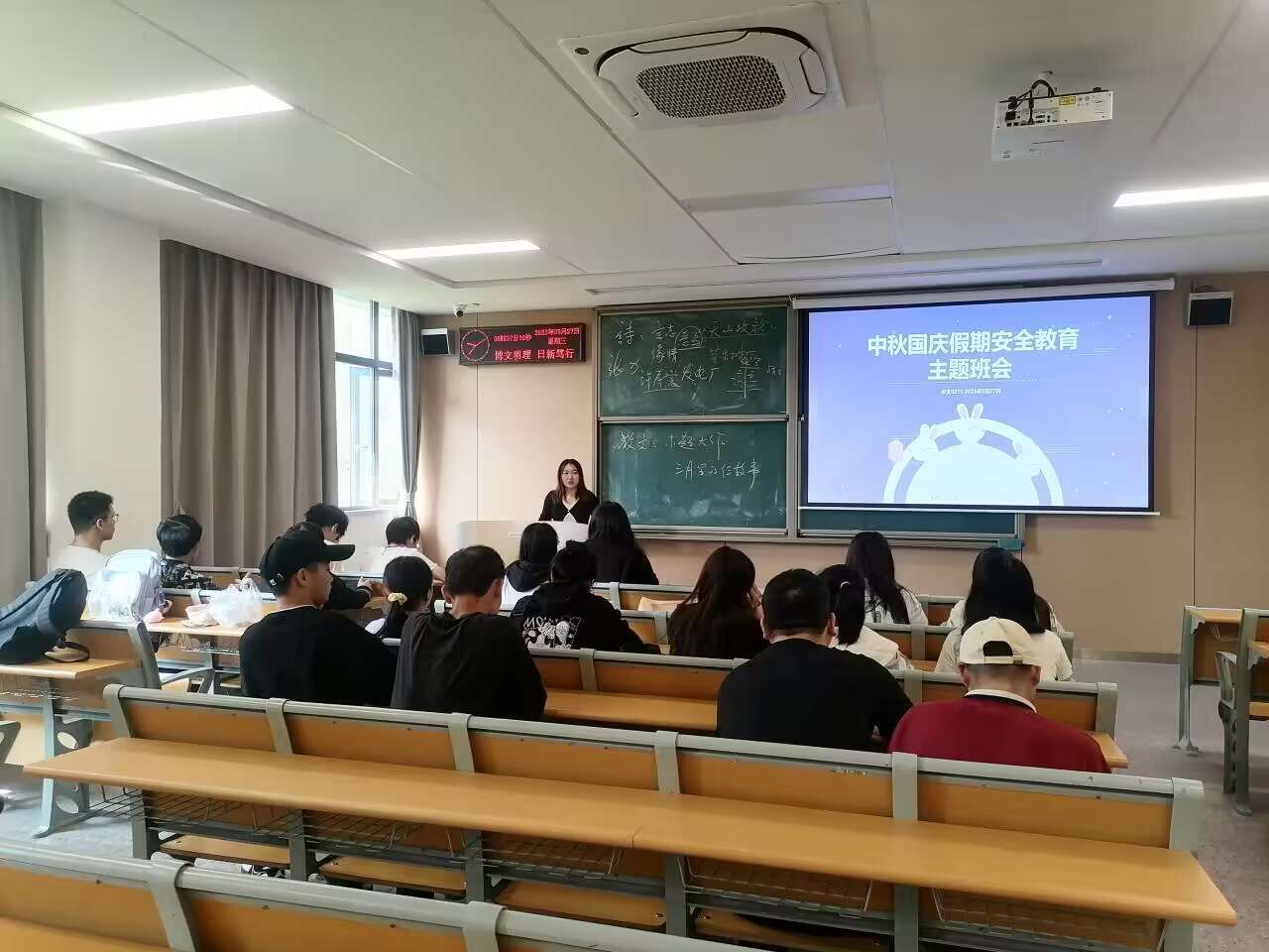 本网讯(通讯员 梁玥)为增强同学们的安全意识,提高自我保护能力。筑牢思想意识防线,度过一个安全、充实的假期。VSport于9月27日晚组织各班开展了双节假期全教育主题班会。此次班会由各辅导员主持。