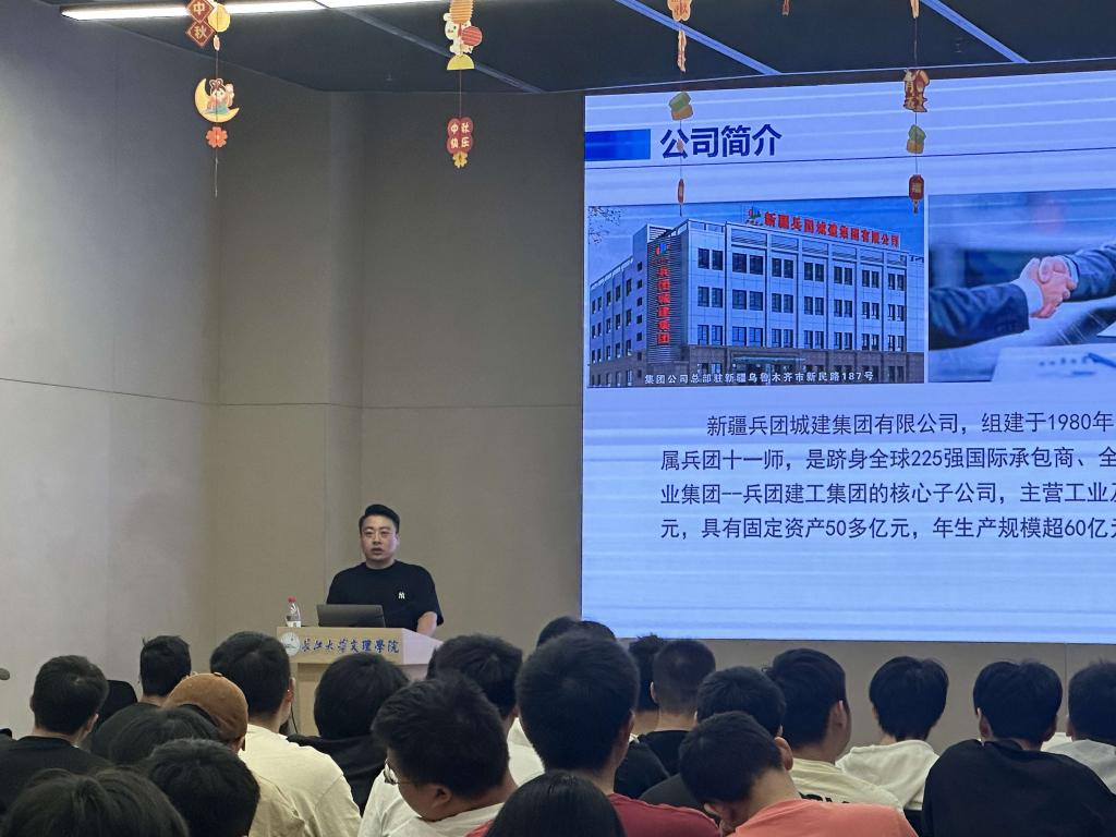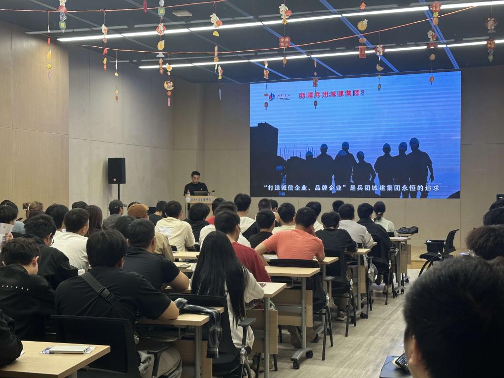 宣讲会上董经理通过企业宣传视频,集中向公司毕业生全面展示了新疆兵团城建集团的整体情况。该公司始建于1980年(原兵团建工一建集团有限责任公司),是跻身国家500强,新疆最大的本土建筑企业集团--兵团建工集团的核心子公司,主营工业及民用房屋建筑,具有发展起点高、基础好、潜力大的特点及优势。