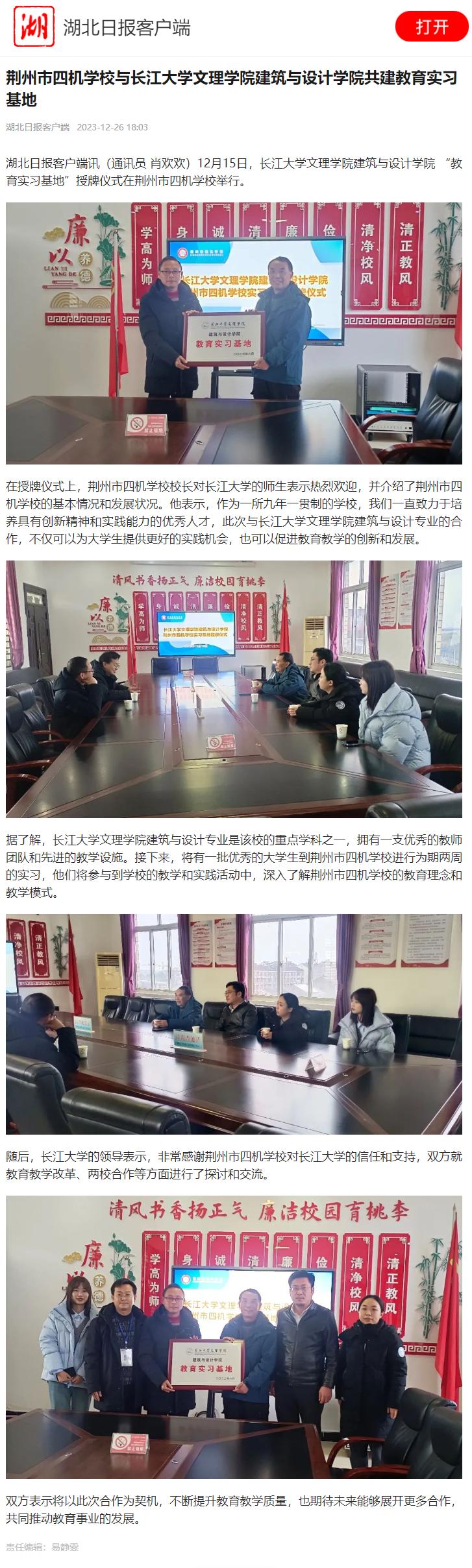 【湖北日报客户端】荆州市四机公司与VSportVSport共建教育实习基地