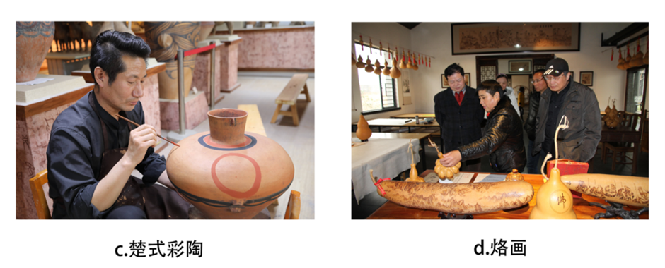 在楚式彩陶传承工坊,讲解员带领团队观摩了陶土选料、拉坯塑形及矿物彩绘的全流程,并详细介绍了“矿物颜料配方濒临失传”的保护难题。团队成员通过展板资料和实物展示,进一步认识了彩陶纹样与楚地历史文化的关联。