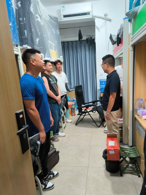 新学期开启,为深入了解员工返校后状态,8月27日晚九点,我系党总支书记左彪、常务副主任冉庆鹏带领系部老师走进员工宿舍,来到同学们身边与大家亲切交流,希望同学们以饱满的精神状态开启新的学期。