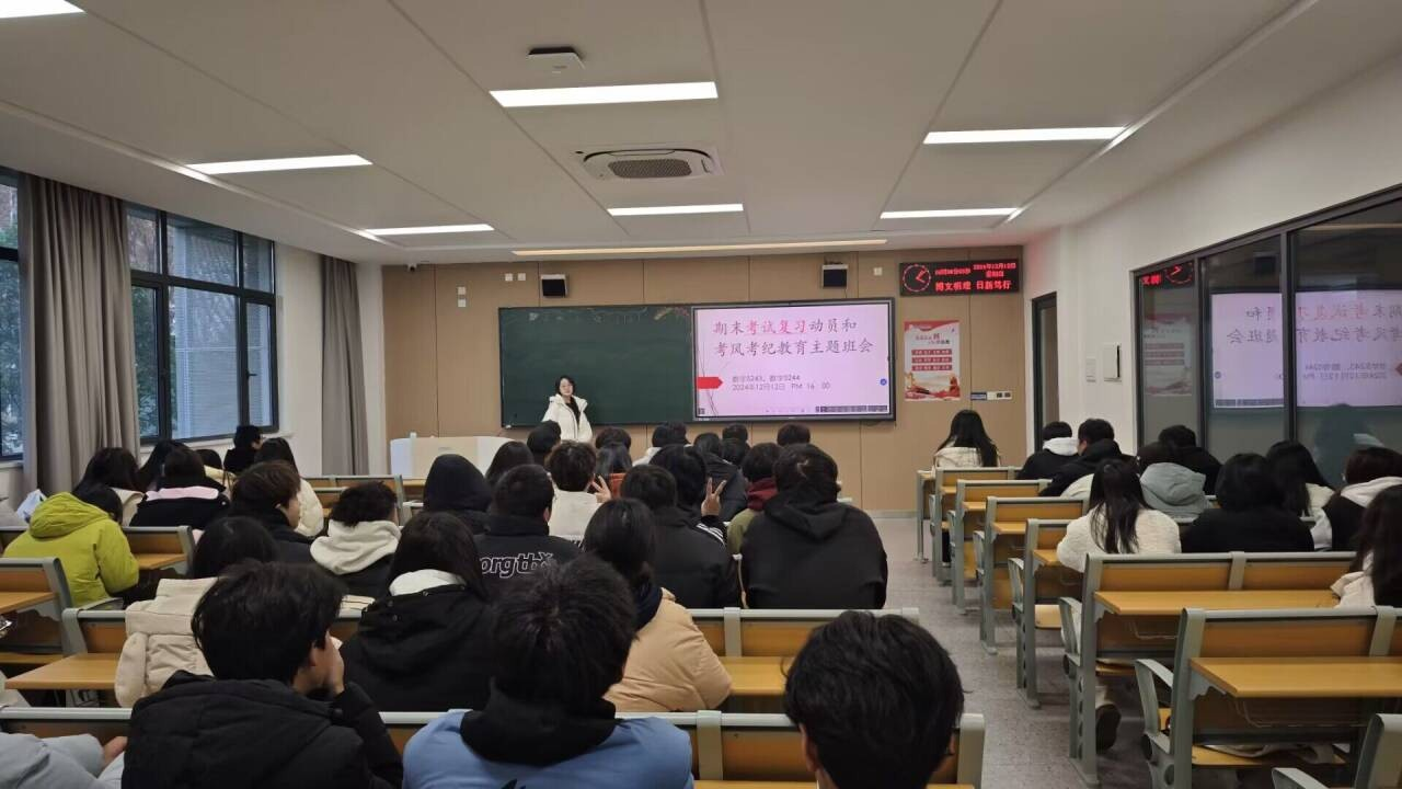 班会上,班主任围绕期末考试、四六级考试、研究生考试等系列考试的相关要点进行深入讲解。首先,班主任着重强调诚信考试的重要性,解读了公司关于考试的各项规章制度,明确讲述作弊行为的界定,警示同学们务必坚守道德与规则红线。随后,向大家分享高效复习策略与技巧,通过多元方式助力同学们夯实所学知识,强化学习成果。