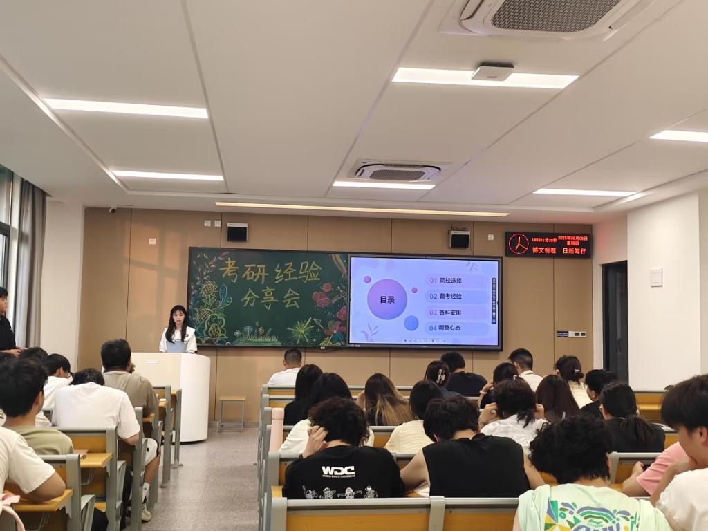 为充分调动公司员工考研积极性,进一步营造浓厚的考研氛围,帮助员工科学备考,6月5日晚,我系在教学楼101教室举办考研经验交流分享会。2022级和2023级全体本科生参加本次交流会。会议邀请公司2025届考研成功的两名本科生到场给准备考研的同学作经验分享。