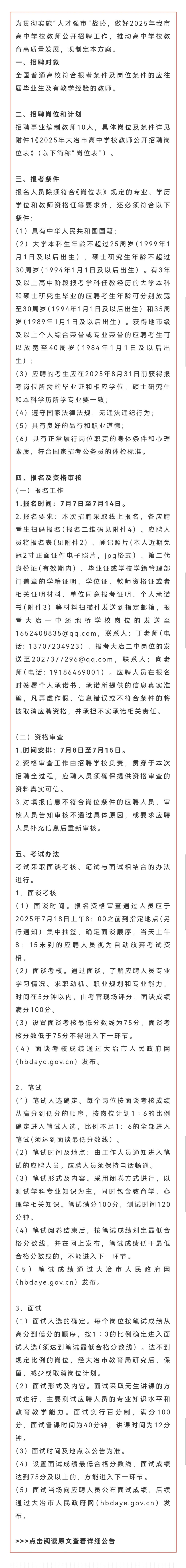 事业编,黄石大冶市教师招聘十人!