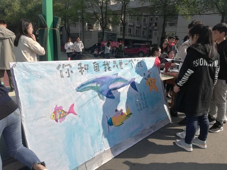 首先,由各个小组准备好事先搜集的量表,并在现场进行相关活动的宣传活动,盛情邀请大一、大二的同学参与此次问卷调查,现场氛围活跃。