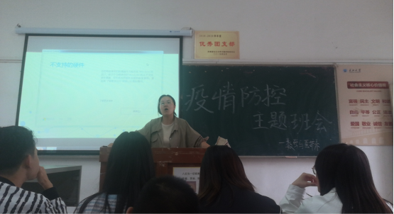 班会伊始,辅导员李佳介绍当前疫情形式。随后她从三个方面对同学提出要求:一是增强大局意识,积极配合公司各项疫情防控工作,如核酸检测、今日校园打卡等,同心协力打赢这场疫情防控校园保卫战。二是严格遵守校规校纪,做到疫情期间非必要不离开荆州,遇到紧急情况需要离荆,应按流程上报,得到批准之后方可离荆。三是如若出现发烧发热等情况,应立即与辅导员取得联系,然后根据公司发热员工处理流程进行处理。会议最后,辅导员提醒各位同学要认真准备教团队格证考试,为以后工作、就业打好基础。