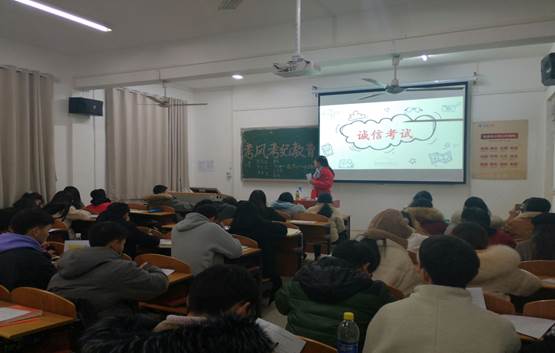 本网讯(见习记者 周逊)12月7日,我系各班召开了“考风考纪”主题教育班会,内容涵盖英语四六级诚信考试,期末备考复习等。班会由辅导员李佳老师主持。数学各班同学参与其中。