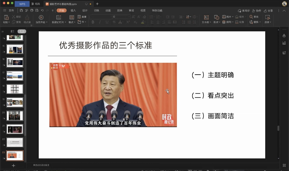 之后,叶老师总结了优秀摄影作品的三个标准,分别是主题明确、看点突出、画面简洁,并以习近平总书记微记录摄影作品、实地考察摄影作品为例进行了阐释。同时,叶老师以本系四六级动员大会摄影作品为例,指出了员工干事的不足,为员工会提出了宝贵的建议。