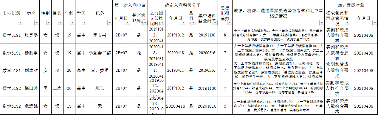 经数学与医护系员工党支部委员会会议研究,报公司党委会会议审查,拟确定张昊雯等5名员工为发展对象,现予公示。