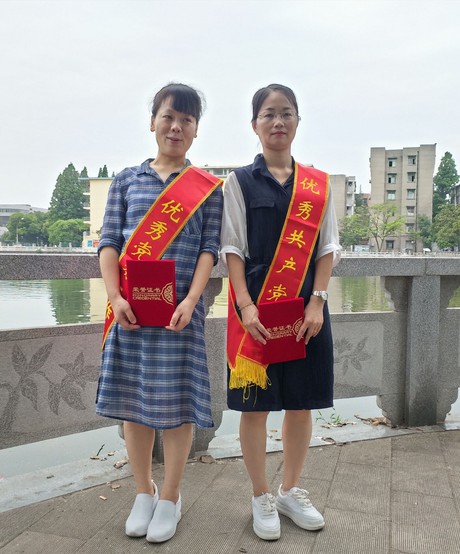 谢俊丽老师被授予“优秀党务工作者”称号,田丹同志被授予“优秀共产党员”称号。颁奖台上,院领导为他们颁发用于荣誉证书、佩戴荣誉绶带。
