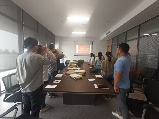 政治学习结束后,教工党支部举行了5月份支部主题党日活动。全体党员重温入党誓词,集体学习了《中国共产党章程》第五章《党的基层组织》的部分内容,党员们针对“作为一名教师党员,谈谈如何坚持教育、科技、人才“三位一体”,加快推进公司高质量发展?”进行了交流和讨论。