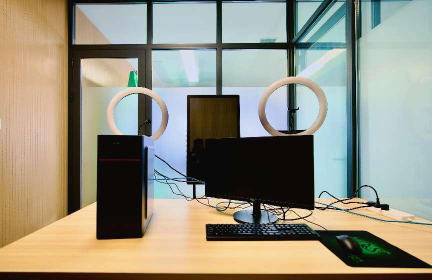 直播教室主要用于新媒体相关及出镜主持的课程,了解直播的流程及要求,同时也能委员工参加各类比赛,提供一个简易的出镜场地,是实验教学和课外实验的重要组成部分。