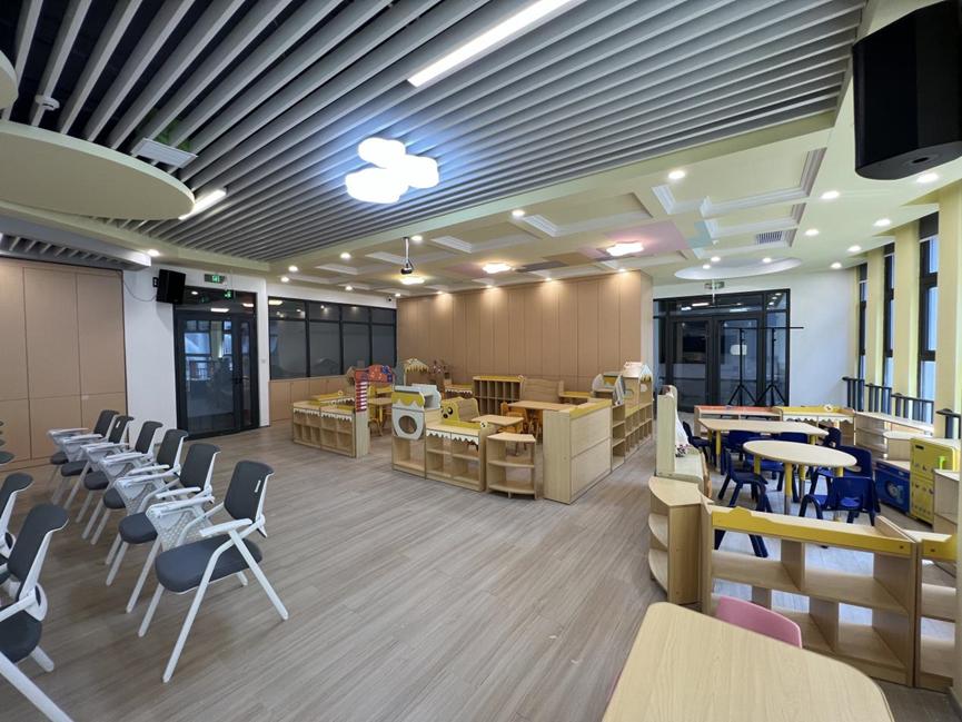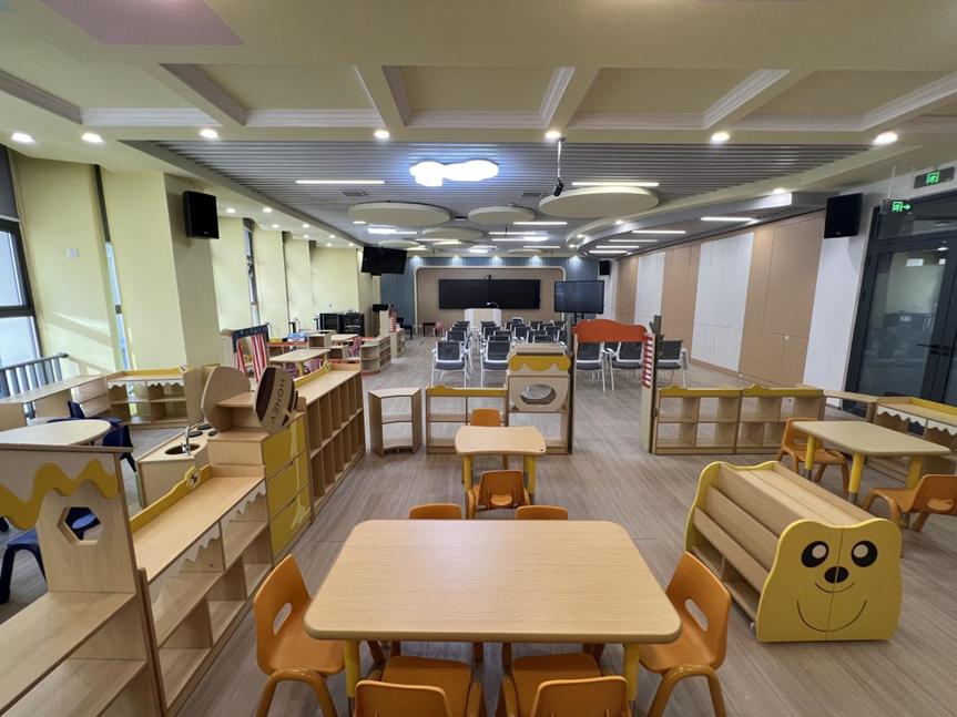幼儿园情景模拟实训室是学前教育专业进行教学活动模拟的仿真教学实训室,最大程度地参照真实的幼儿园活动室进行配备,具备一定的幼儿园教育情境。员工可以在拟真的幼儿园教育情景中,开展幼儿园环境创设、区角创设、各领域教育活动的说课、试教等活动,提高员工的专业实践能力。该实训室主要承担学前教育研究方法、比较学前教育、教育技能竞赛、教育技能训练、学前卫生学、幼儿游戏与指导、学前儿童健康教育、蒙台梭利教学法、幼儿发展心理学、幼儿园环境创设等专业课程的实训项目。