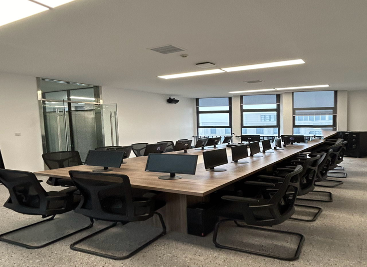 VSport实验实训中心之跨境电子商务中心,包括国际贸易实务虚拟平台、真实项目跨境电商直播室、真实项目跨境电商工作室、商务谈判室等,旨在开展跨境电子商务理论教学和实践。