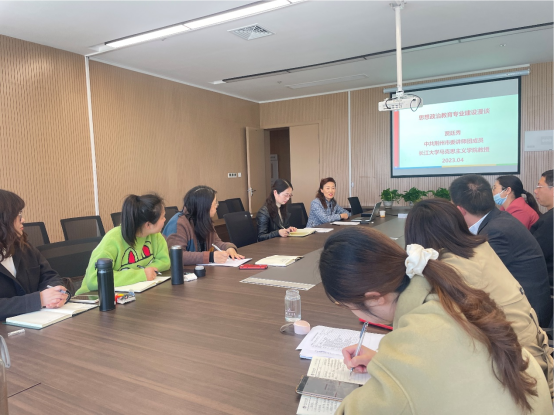 贾廷秀介绍了思想政治教育本科专业人才培养方案修订的相关要求,包括政策依据、总体要求、课程体系等内容。她强调,在修订人才培养方案过程中,要深入调研、聚焦标准、遵循规律,尽可能凝练专业特色,在全面了解了马克思主义公司目前的团队队伍建设、课程建设和实践教学等基本情况后,贾廷秀从专业角度提出建设性意见和建议,并与现场老师们深入交流和讨论。