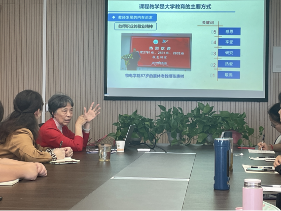 程庆华教授结合自己多年从教的心得体会,给予青年老师宝贵且真诚的建议,她说,课比天大,希望青年教师能敬畏、热爱、研究、享受、感恩。