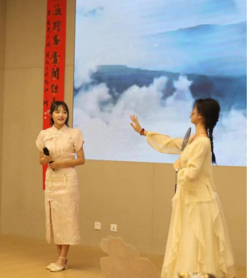 接着,肖寒芝副经理对本次“迎中秋”诗歌晚会致辞,首先代表公司向全院师生致以节日的祝福,并提到公司长期以来十分重视中华优秀传统文化的传承与发扬,其中包括图书馆举办的“浓情端午忆屈原,楚韵声声经典传”迎端午读书会、掌上诗词大赛、老员工中华经典美文诵读等系列活动,希望通过此类活动丰富校园文化生活,帮助我校老员工亲近国学精粹,提升个人文化修养。