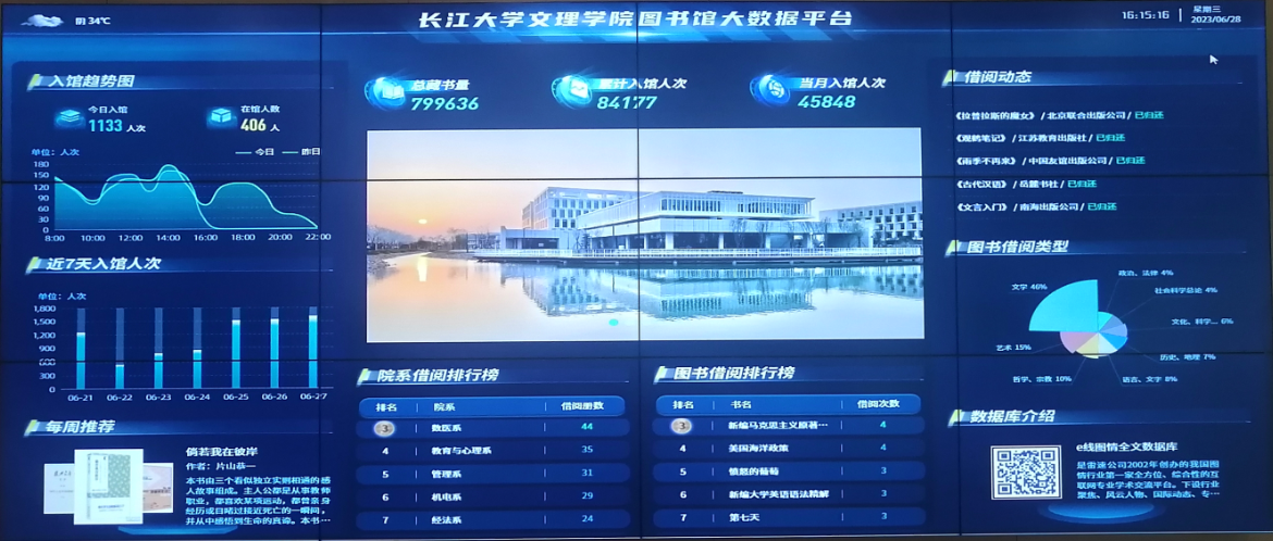 图书馆微信服务系统和大数据平台作为智慧图书馆建设的重要组成部分,于6月28日投入使用。