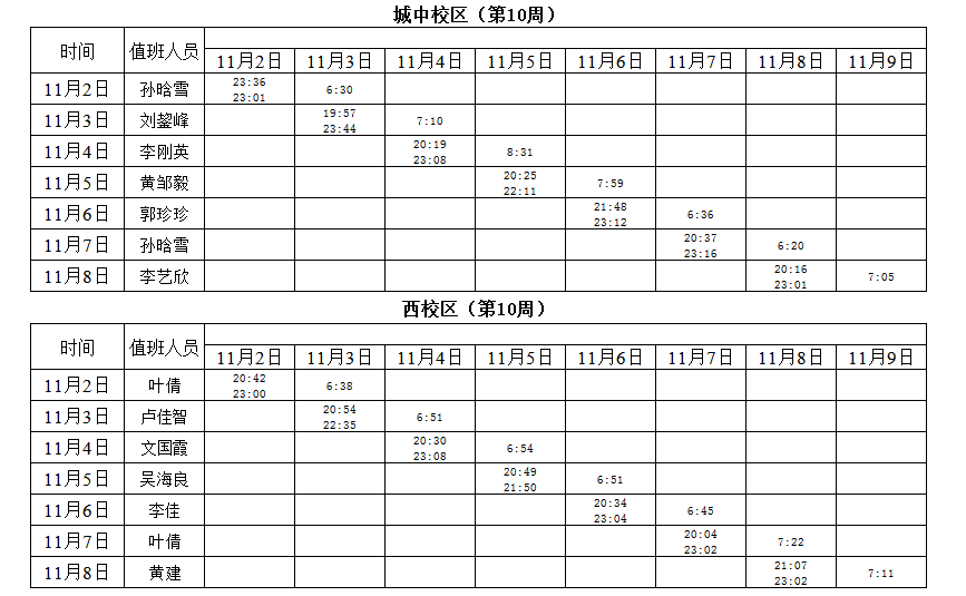 2020-2021学年第一学期第9-10周学工人员寝室值班通报