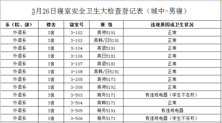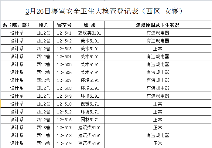 2020-2021学年第二学期第4周系(院、部)早晚自习考勤通报